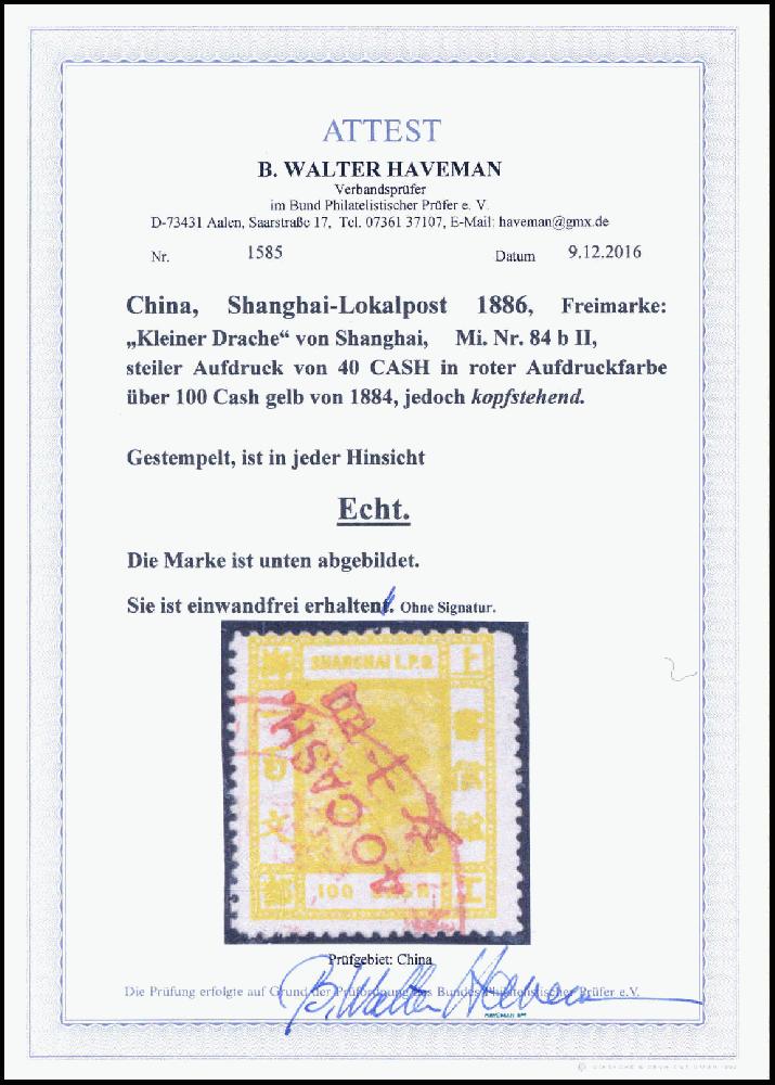 | Zusatzinformationen und Suchstichworte: | Württembergisches Auktionshaus 140. Versteigerung Auktionstermin: 17. - 18. Juni 2022 Los 1024 China Lokal Shanghai 4 C. a. 100 C., roter kopfstehender Aufdruck in Type II, tadellos gestplt., Fotoattest Haveman BPP. Ausruf 400,00 EUR |