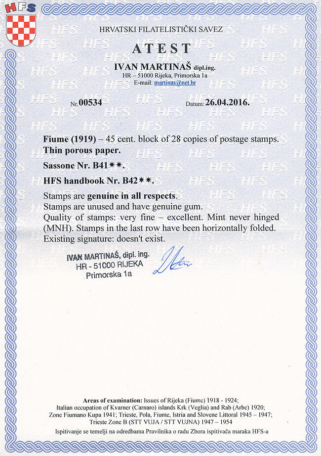 | Prüfer: | Martinaš, Ivan (HFS (Hrvatski Filatelistički Savez)) |