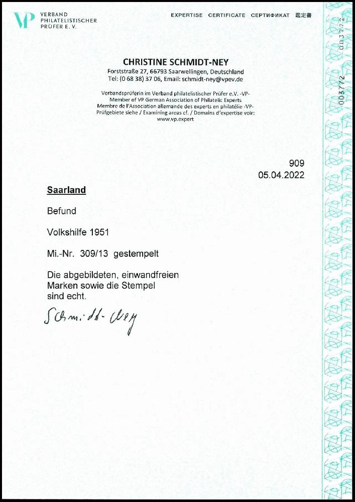 | Prüfgebiet: | Saarland (ab Mi-Nr. 206) |