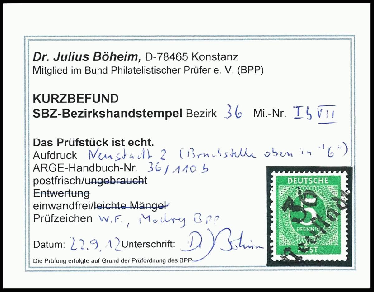| Prüfgebiet: | Alliierte Besetzung SBZ Bezirkshandstempel Bezirk 36 |