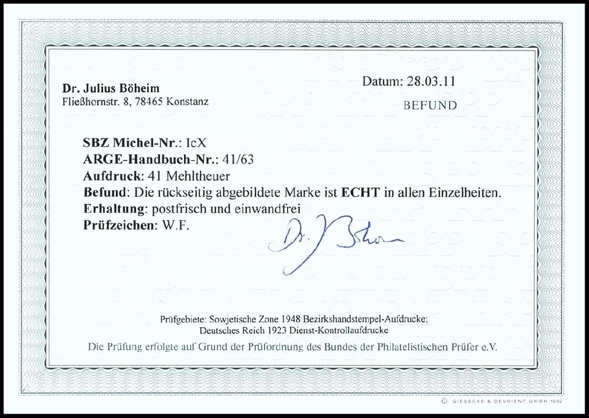 | Prüfgebiet: | Alliierte Besetzung SBZ Bezirkshandstempel Bezirk 41 |