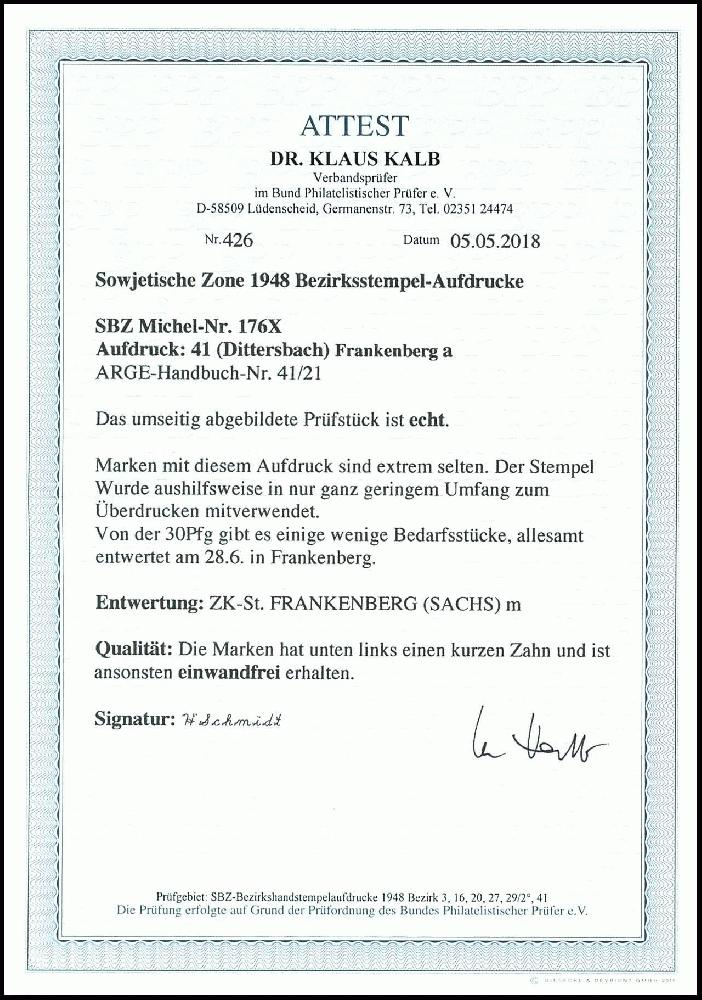 | Prüfgebiet: | Alliierte Besetzung SBZ Bezirkshandstempel Bezirk 41 |