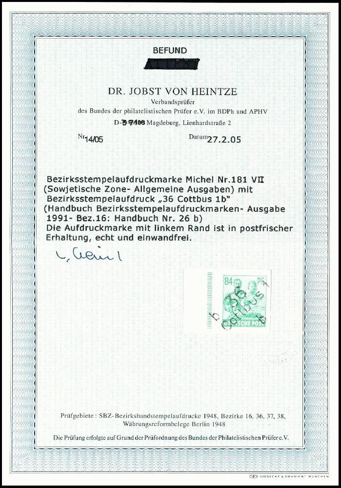 | Prüfgebiet: | Alliierte Besetzung SBZ Bezirkshandstempel Bezirk 36 |