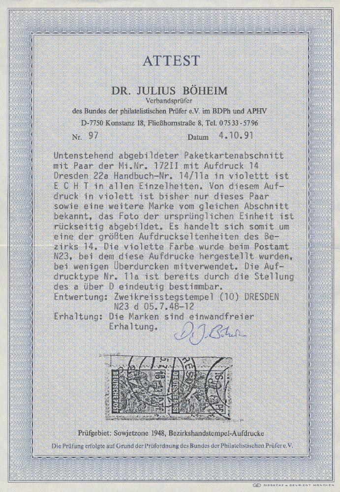| Prüfgebiet: | Alliierte Besetzung SBZ Bezirkshandstempel Bezirk 14 |