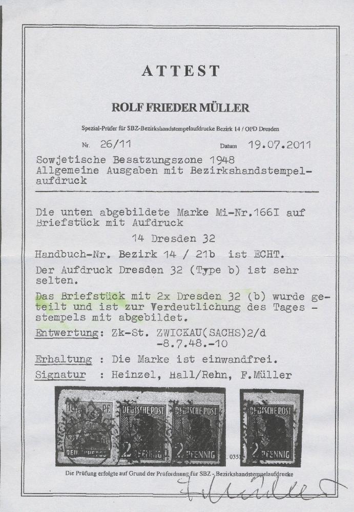 | Prüfgebiet: | Alliierte Besetzung SBZ Bezirkshandstempel Bezirk 14 |