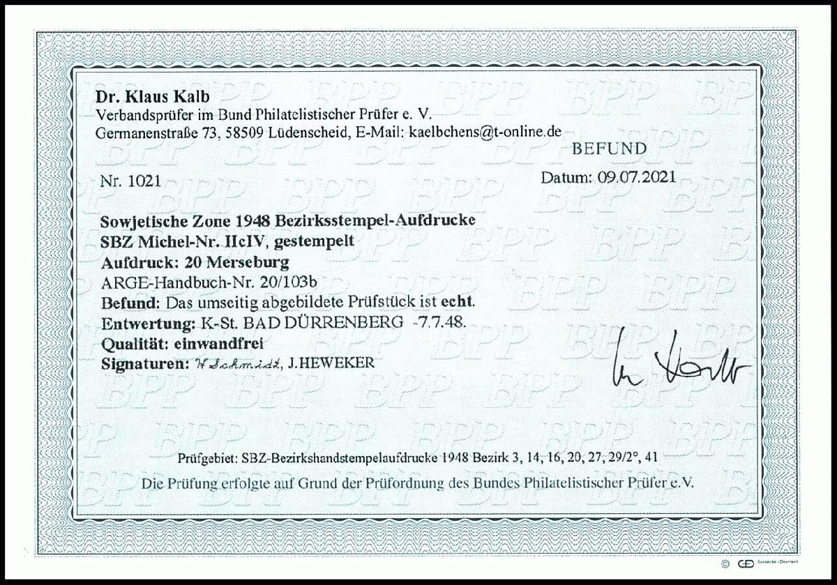 | Zusatzinformationen und Suchstichworte: | Dr. Reinhard Fischer 186. Auktion Auktionstermin: 18. - 21. Mai 2022 Los 3736 SBZ Handstempel Bezirk 20 3 Mark mit Aufdruck 20 Merseburg in Type b, tadellos, gestempelt, Fotobefund Dr. Kalb BPP, Mi. 350,- Ausruf 120,00 EUR |