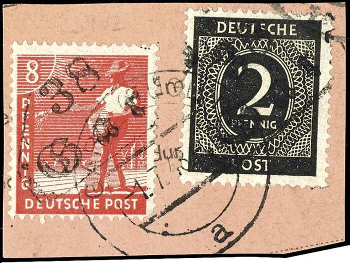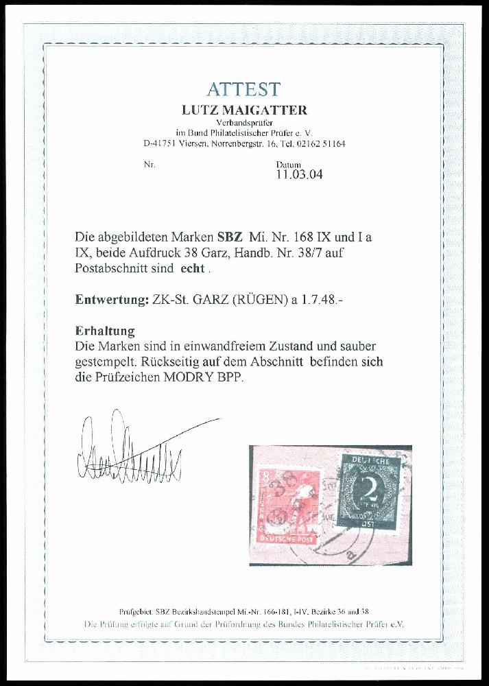 | Prüfgebiet: | Alliierte Besetzung SBZ Bezirkshandstempel Bezirk 38 |