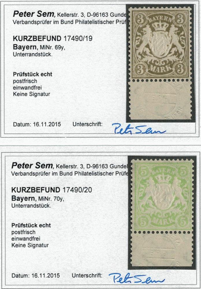 | Zusatzinformationen und Suchstichworte: | Dr. Derichs 5. Online Live Auktion Auktionstermin: 10. Juli 2022 Los 3113 Altdeutschland Bayern 3 und 5 Mk., gutes Papier "y", zwei Unterrandstücke, postfrisch in Luxus-Qualität. Unsigniert, zwei Fotobefunde Sem BPP: "einwandfrei". (Mi. 400.-+) Ausruf 130,00 EUR |