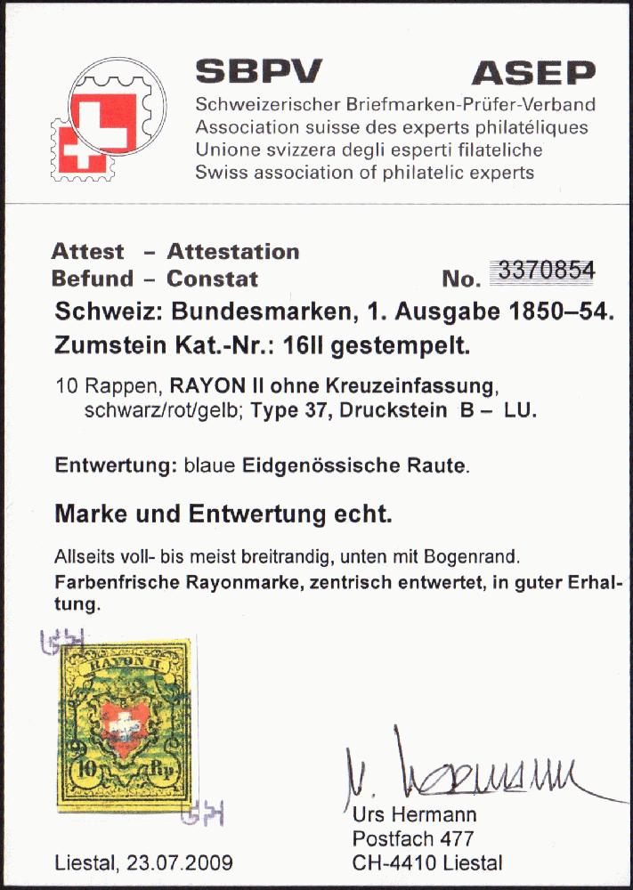 | Prüfer: | Hermann, Urs (SBPV / ASEP (Schweizerischer Briefmarken-Prüfer-Verband)) |