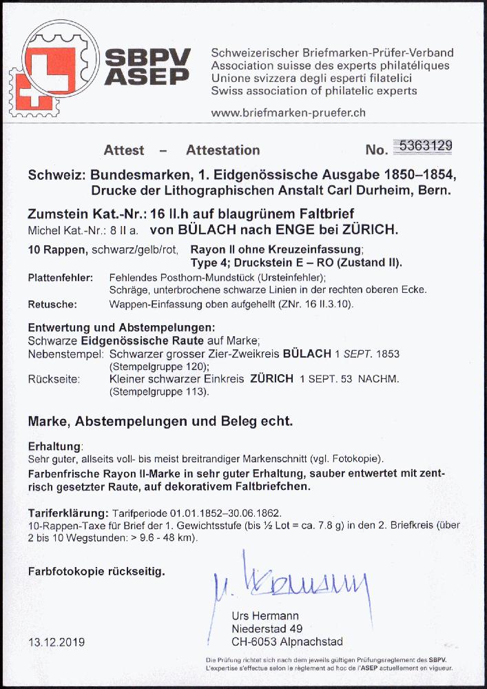 | Zusatzinformationen und Suchstichworte: | 108. Briefmarken Lenz Auktion Auktionstermin: 29. April - 5. Mai 2022 Los 2018 Schweiz Brief mit 10 Rp. Rayon II, Type 4, Druckstein E-RO, mit PF und Retusche (Zst. 16 II.3.10), allseits voll- breitrandiger Schnitt, Brief von Bülach (schwarzer grosser Zier-K2) nach Enge bei Zürich (Rückseite kleiner schwarzer K1 "Zürich"), sehr gute Erhaltung auf dekorativem Faltbrief, Attest Hermann 2019 Ausruf 150,00 EUR |