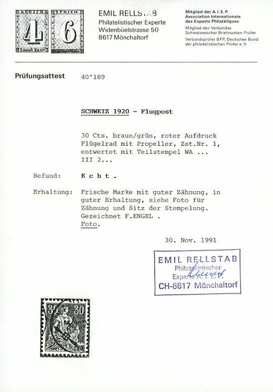 | Prüfer: | Rellstab, Emil (AIEP (Association internationale des experts en philatélie)) |