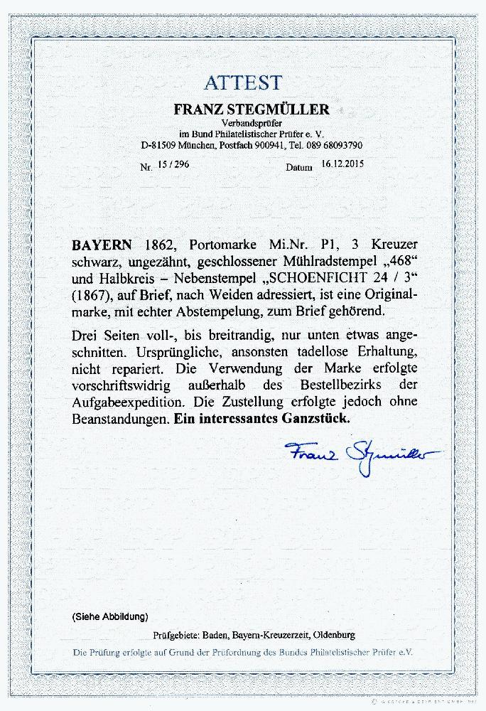 | Prüfgebiet: | Altdeutschland Bayern Portomarken |