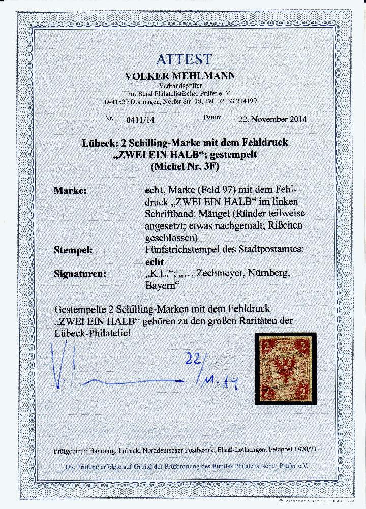 | Prüfer: | Mehlmann, Volker (BPP (Bund Philatelistischer Prüfer)) |