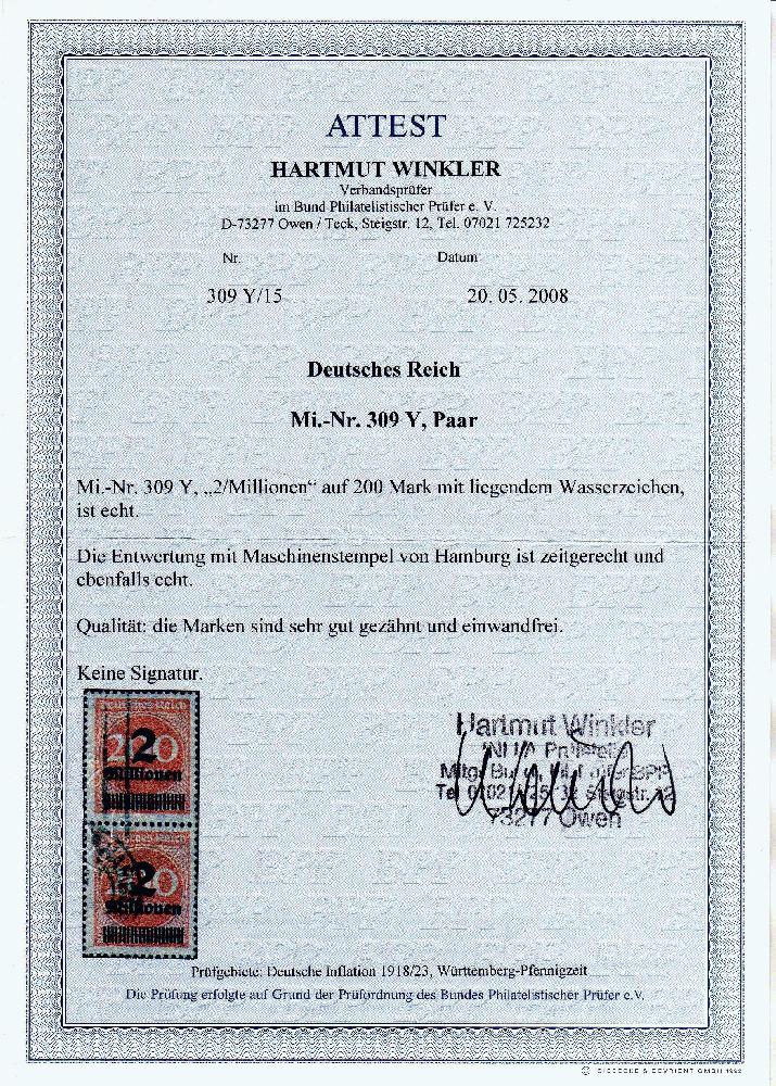 | Prüfgebiet: | Deutsches Reich 1919 - 1923 (Mi-Nr. 107 - 343) |
