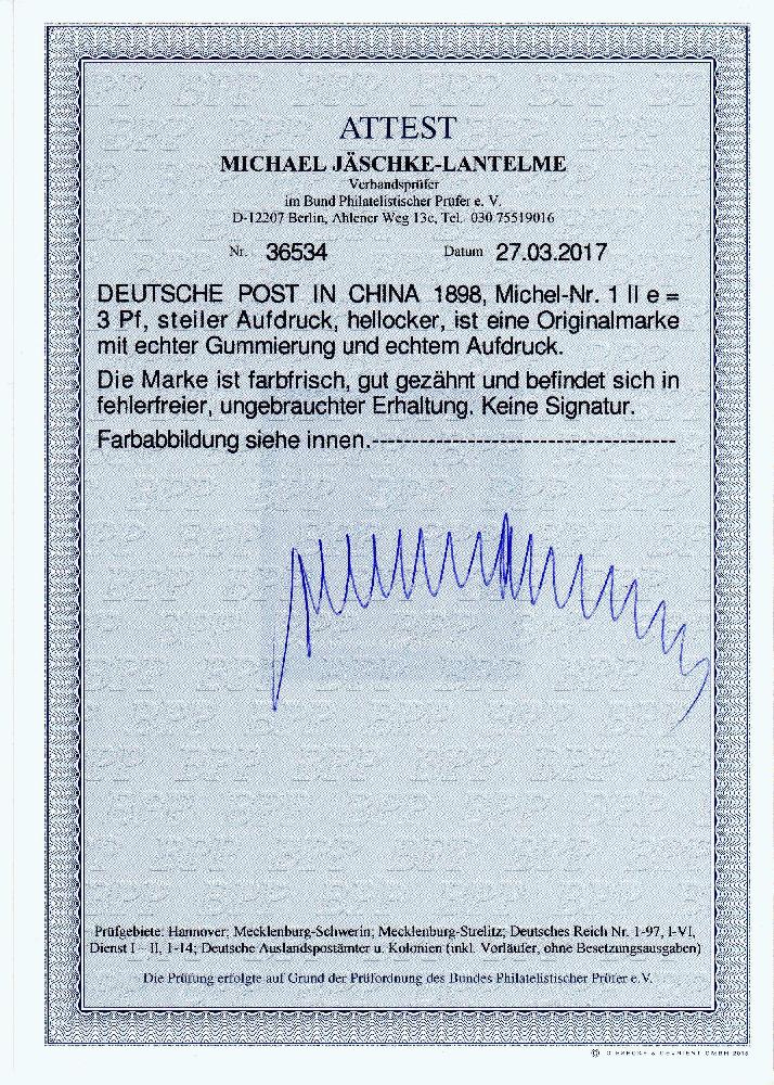 | Prüfer: | Jäschke-Lantelme, Michael (BPP (Bund Philatelistischer Prüfer)) |