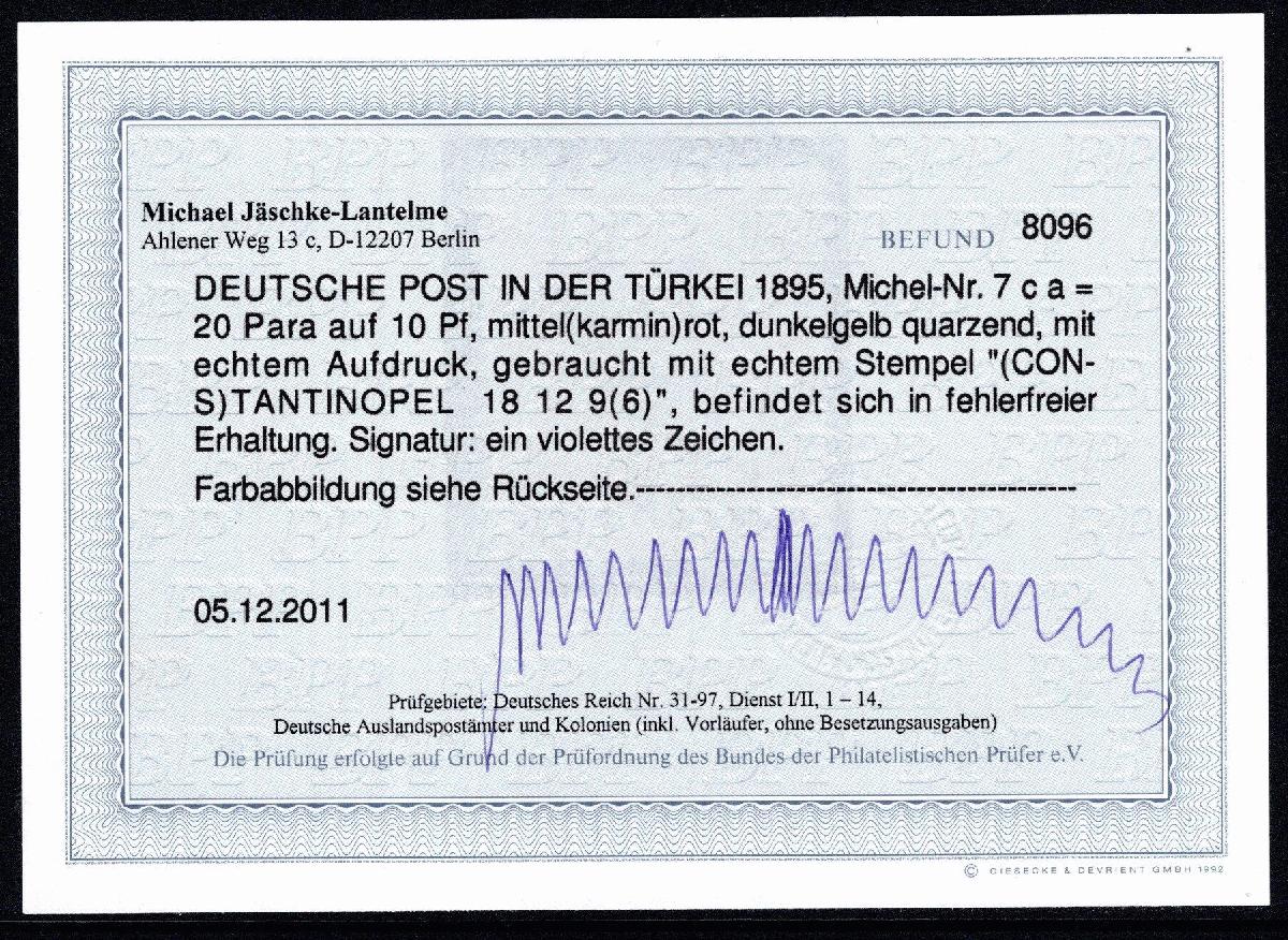 | Prüfgebiet: | Deutsche Auslandspostämter Türkei |