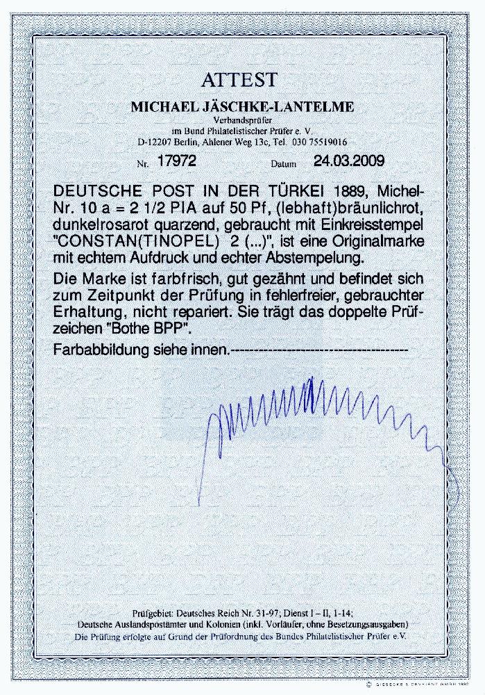 | Prüfgebiet: | Deutsche Auslandspostämter Türkei |