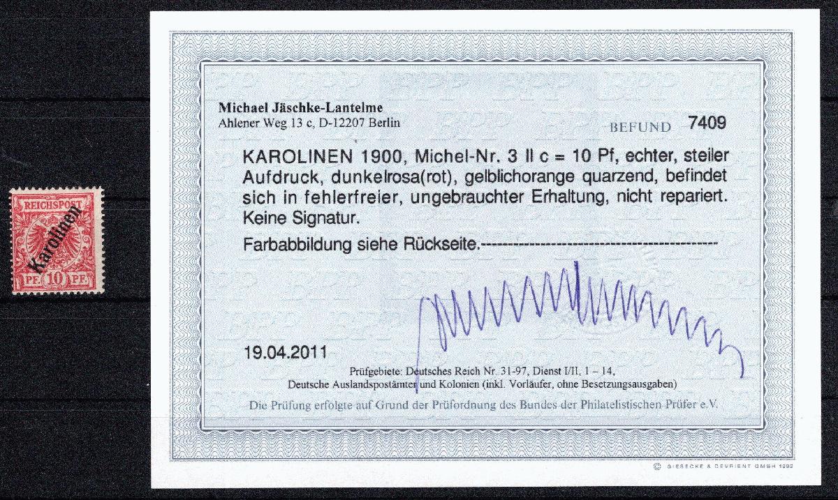 | Prüfgebiet: | Deutsche Kolonien Karolinen |