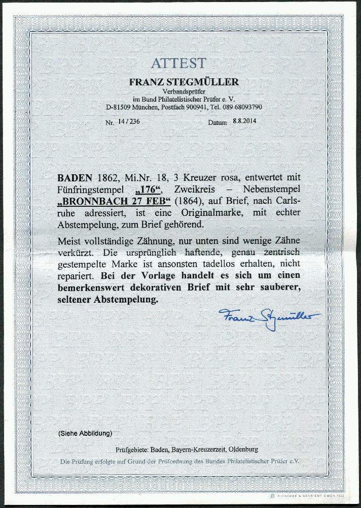 | Prüfer: | Stegmüller, Franz (BPP (Bund Philatelistischer Prüfer)) |