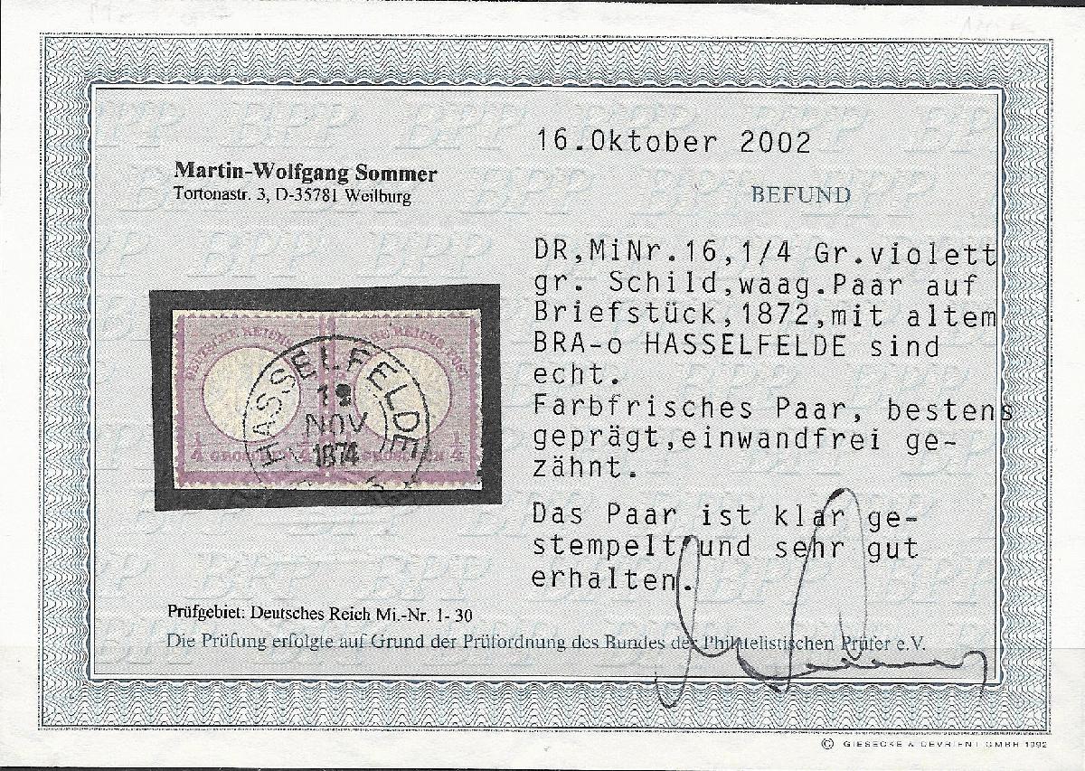 | Prüfer: | Sommer, Martin-Wolfgang (BPP (Bund Philatelistischer Prüfer)) |