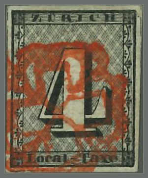 | Zusatzinformationen und Suchstichworte: | Rapp Auktion 2022 Auktionstermin: 2. - 7. Mai 2022 Los 1 Schweiz Kanton Zürich Type III, sehr farbenfrisch mit gut sichtbaren Unterdrucklinien allseitig gleichmässig breite Ränder und klar ausgeprägter roter Rosette. Eine hervorragend erhaltene Marke. Atteste Moser und Weid, signiert Cueni. Zuschlag 8.500,00 CHF |