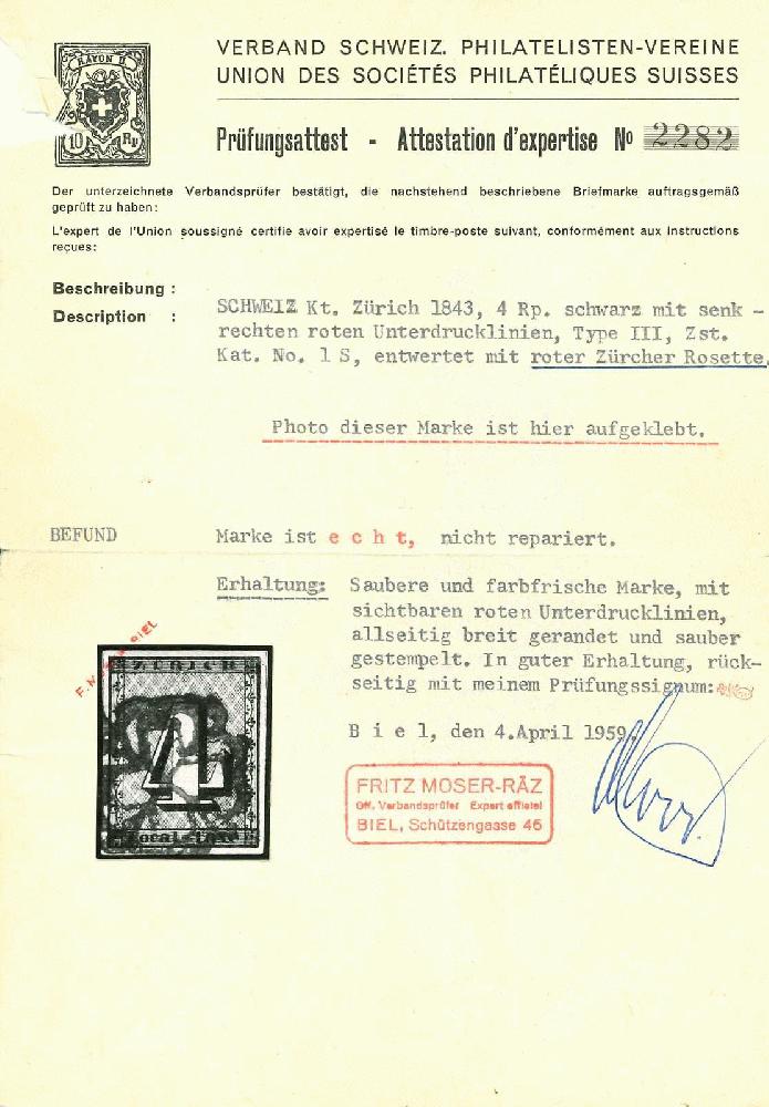 | Prüfer: | Moser-Räz, Fritz (SBPV / ASEP (Schweizerischer Briefmarken-Prüfer-Verband)) |