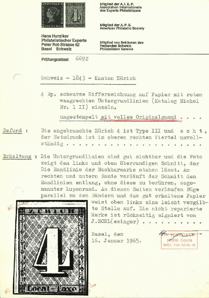 | Prüfer: | Hunziker, Hans (AIEP (Association internationale des experts en philatélie)) |