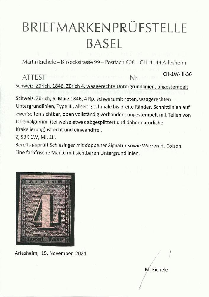 | Prüfer: | Eichele, Martin (BPB (Briefmarkenprüfstelle Basel)) |