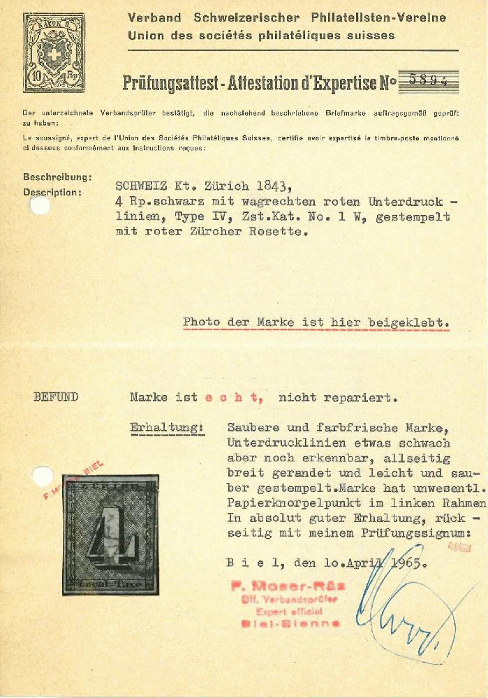 | Zusatzinformationen und Suchstichworte: | Rapp Auktion 2022 Auktionstermin: 2. - 7. Mai 2022 Los 6 Schweiz Kanton Zürich Type III, mit noch sichtbaren Unterdrucklinien, gute bis breite Ränder, farbenfrisch mit sauberer Rosette. Abgesehen von einer Sandkornstelle im linken Rahmen tadellos, siehe Atteste Moser und Eichele. Zuschlag 5.200,00 CHF |