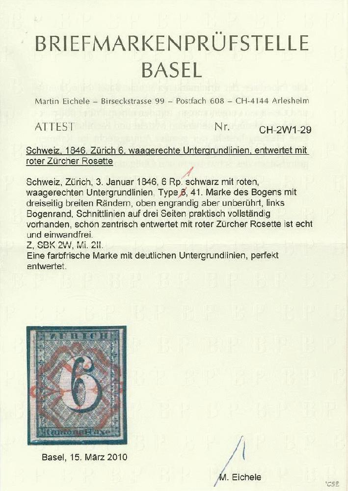 | Prüfer: | Eichele, Martin (BPB (Briefmarkenprüfstelle Basel)) |
