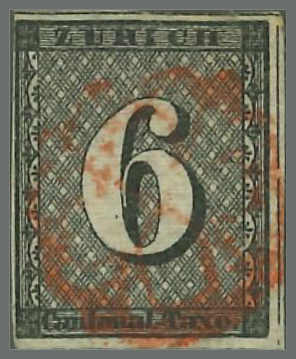 | Zusatzinformationen und Suchstichworte: | Rapp Auktion 2022 Auktionstermin: 2. - 7. Mai 2022 Los 22 Schweiz Kanton Zürich Type III vom 58. Bogenfeld, frisch mit kräftigem Schwarzdruck, nur oben links an kurzer Stelle an die Randlinie geschnitten, laut Attest Hermann "in sehr guter Erhaltung". Zuschlag 380,00 CHF |