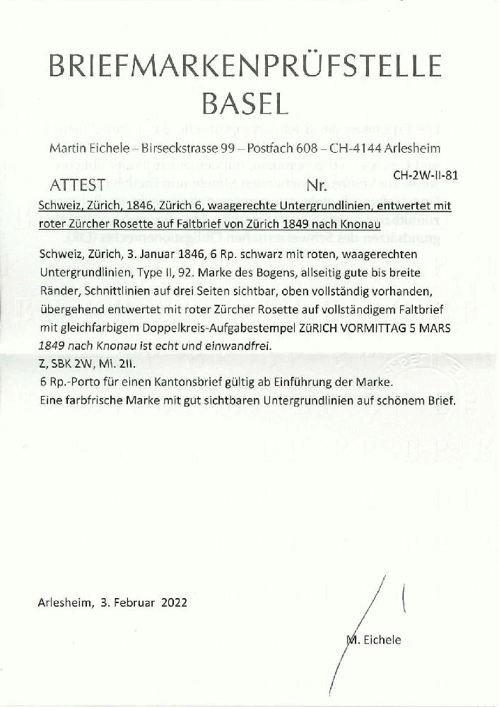 | Zusatzinformationen und Suchstichworte: | Rapp Auktion 2022 Auktionstermin: 2. - 7. Mai 2022 Los 26 Schweiz Kanton Zürich Type II vom 92. Bogenfeld, farbenfrisch mit deutlichen Unterdrucklinien, gute bis breite Ränder mit Schnittlinien an 3 Seiten, übergehend mit Rosette und Aufgabestempel ZÜRICH 5 MARS 1849 auf schönem und vollständigem Faltbrief nach Knonau. Tadellose Erhaltung. Attest Eichele. Zuschlag 2.200,00 CHF |