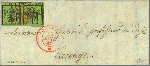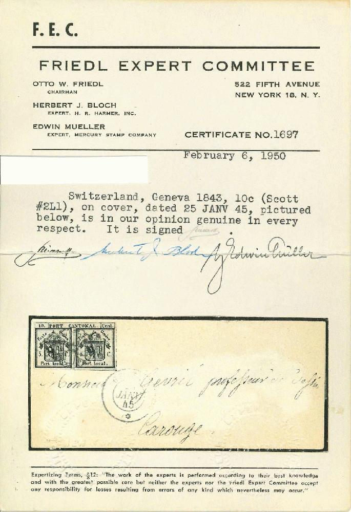 | Zusatzinformationen und Suchstichworte: | Rapp Auktion 2022 Auktionstermin: 2. - 7. Mai 2022 Los 30 Schweiz Kanton Genf Doppelgenf, in leuchtend frischen Farben, allseitig breitem Schnitt mit ideal und zentrisch aufgesetzter, leicht übergehender Rosette auf vollständigem Faltbriefchen mit Aufgabestempel GENEVE 23 JAN 45 nach Carouge. In jeder Beziehung perfekte Erhaltung. Atteste Weid, Fulpius etc. Der Brief stammt aus der Sammlung Stünsi und wurde letztmalig 1999 bei Corinphila versteigert. Zuschlag 40.000,00 CHF |