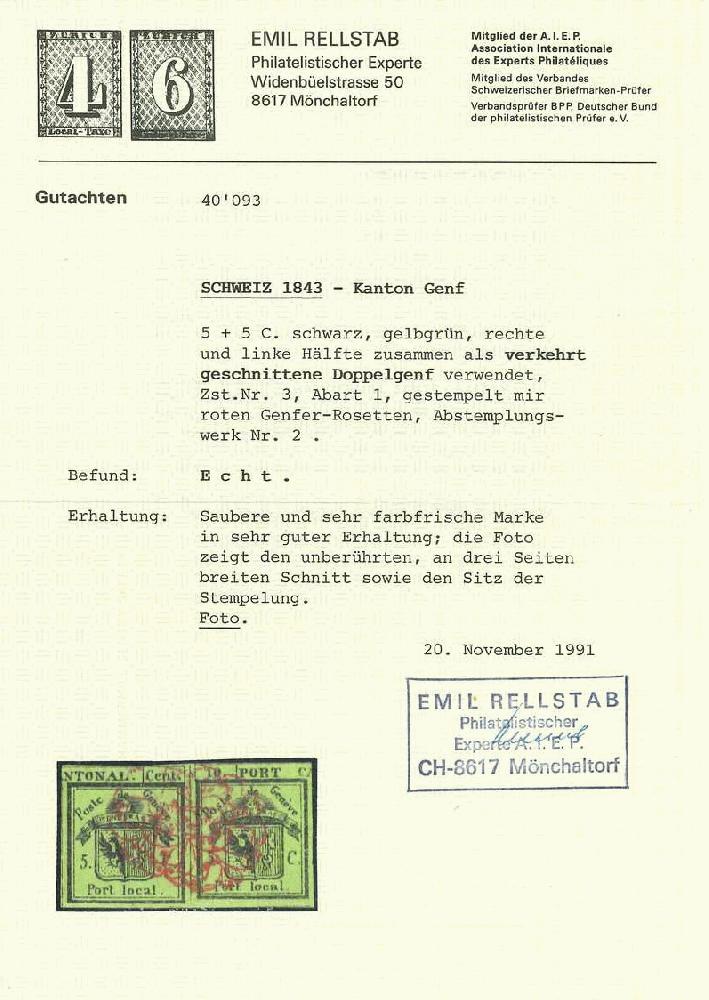 | Prüfer: | Rellstab, Emil (AIEP (Association internationale des experts en philatélie)) |