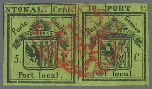 | Zusatzinformationen und Suchstichworte: | Rapp Auktion 2022 Auktionstermin: 2. - 7. Mai 2022 Los 31 Schweiz Kanton Genf Doppelgenf, verkehrt geschnitten, äusserst farbenfrisch, allseitig gute bis breite Ränder mit zwei leicht aufgesetzten Rosetten sehr sauber entwertet. Laut Attesten Rellstab und Eichele eine Rarität "in sehr guter Erhaltung". Zuschlag 15.000,00 CHF |