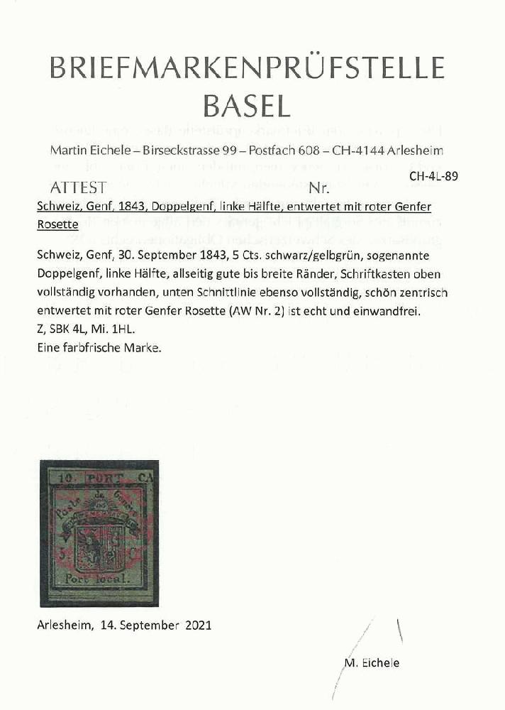 | Zusatzinformationen und Suchstichworte: | Rapp Auktion 2022 Auktionstermin: 2. - 7. Mai 2022 Los 34 Schweiz Kanton Genf Linke Hälfte, sehr farbenfrisch mit zentrisch aufgesetzter Rosette, allseitig gute bis breite Ränder und in tadelloser Erhaltung. Atteste Nussbaum und Eichele. Zuschlag 2.600,00 CHF |