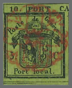 | Zusatzinformationen und Suchstichworte: | Rapp Auktion 2022 Auktionstermin: 2. - 7. Mai 2022 Los 34 Schweiz Kanton Genf Linke Hälfte, sehr farbenfrisch mit zentrisch aufgesetzter Rosette, allseitig gute bis breite Ränder und in tadelloser Erhaltung. Atteste Nussbaum und Eichele. Zuschlag 2.600,00 CHF |