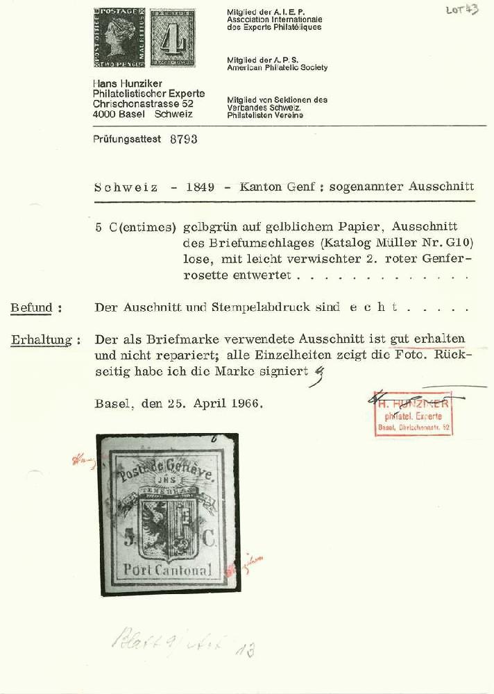 | Prüfer: | Hunziker, Hans (AIEP (Association internationale des experts en philatélie)) |