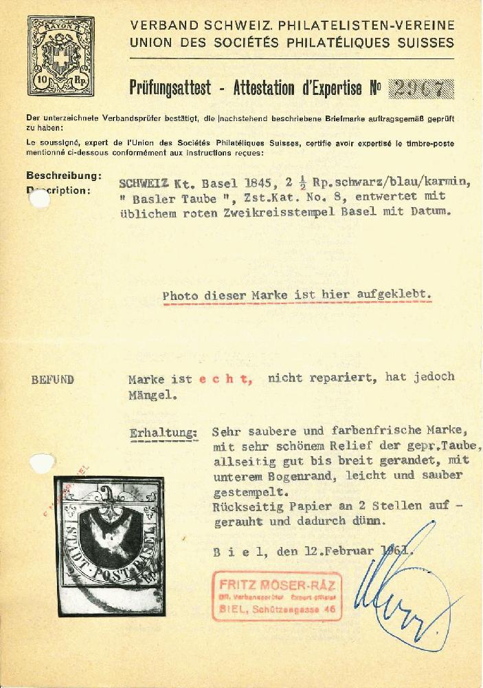 | Prüfer: | Moser-Räz, Fritz (SBPV / ASEP (Schweizerischer Briefmarken-Prüfer-Verband)) |