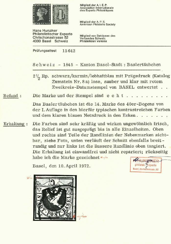 | Prüfer: | Hunziker, Hans (AIEP (Association internationale des experts en philatélie)) |