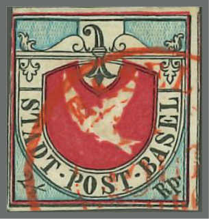 | Zusatzinformationen und Suchstichworte: | Rapp Auktion 2022 Auktionstermin: 2. - 7. Mai 2022 Los 55 Schweiz Kanton Basel 14. Marke des Bogens, kräftige und ungewöhnlich frisch wirkende Farbe, gut geprägtes Relief, weisse Ränder an fast allen Seiten, nur links oben ist die äussere Randlinie tangiert. Oben und rechts sind Randlinien der Nebenmarken sichtbar. Eine sehr schöne Taube in tadelloser Erhaltung. Attest Hunziker. Zuschlag 5.400,00 CHF |