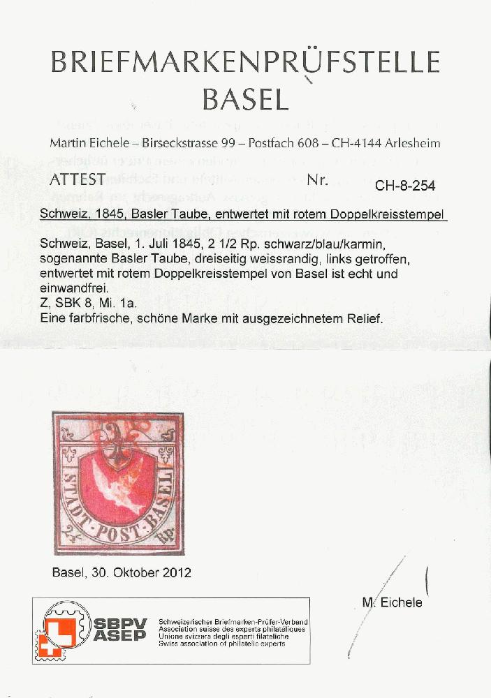 | Prüfer: | Eichele, Martin (BPB (Briefmarkenprüfstelle Basel)) |