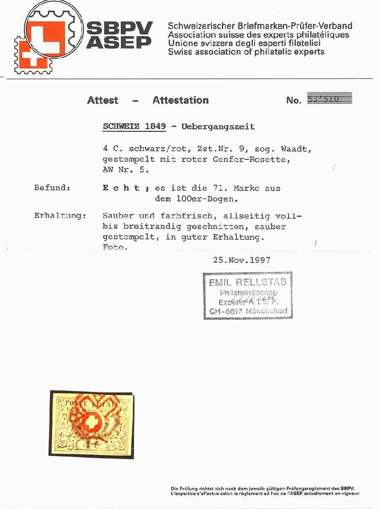 | Prüfer: | Rellstab, Emil (SBPV / ASEP (Schweizerischer Briefmarken-Prüfer-Verband)) |