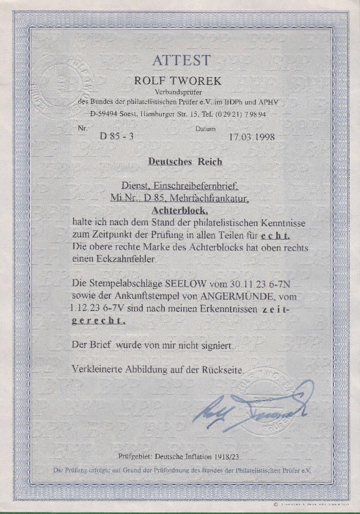 | Prüfer: | Tworek, Rolf (BPP (Bund Philatelistischer Prüfer)) |