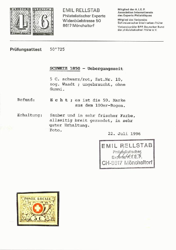 | Prüfer: | Rellstab, Emil (AIEP (Association internationale des experts en philatélie)) |