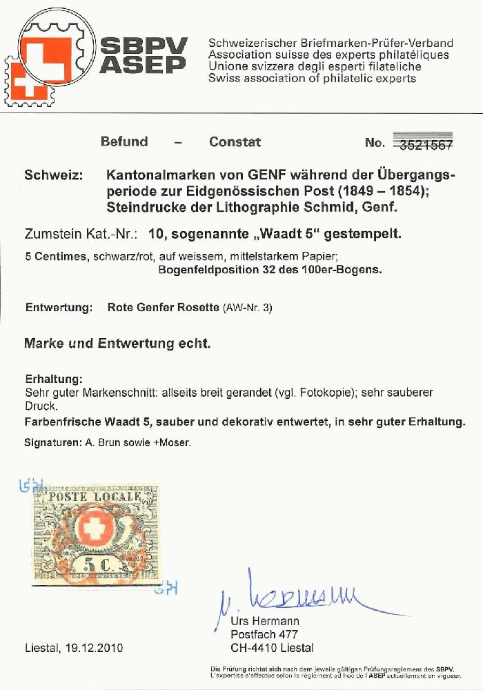 | Prüfer: | Hermann, Urs (SBPV / ASEP (Schweizerischer Briefmarken-Prüfer-Verband)) |