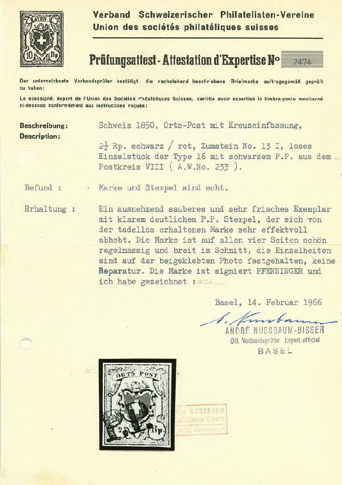 | Prüfer: | Nussbaum-Bisser, André (SBPV / ASEP (Schweizerischer Briefmarken-Prüfer-Verband)) |