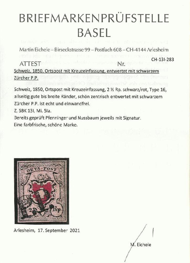 | Prüfer: | Eichele, Martin (BPB (Briefmarkenprüfstelle Basel)) |