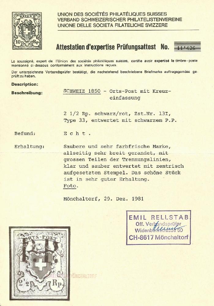 | Prüfer: | Rellstab, Emil (SBPV / ASEP (Schweizerischer Briefmarken-Prüfer-Verband)) |