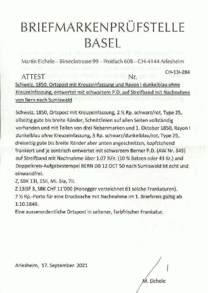 | Prüfer: | Eichele, Martin (BPB (Briefmarkenprüfstelle Basel)) |
